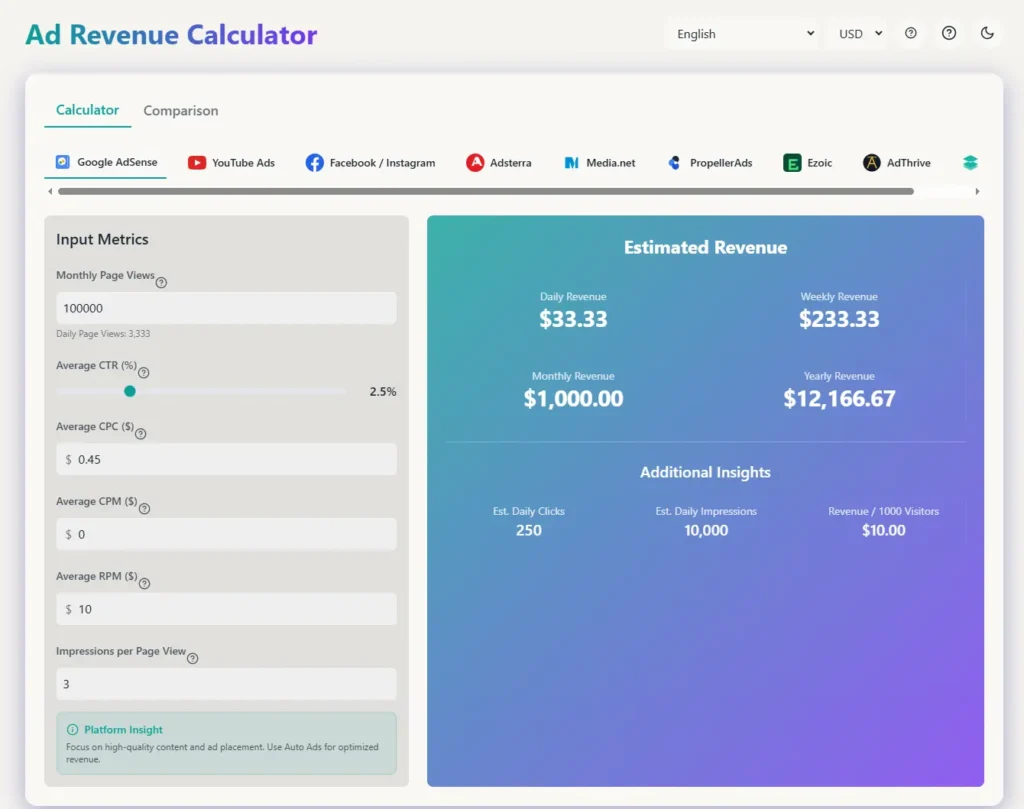 “I want to build an SEO-friendly Ads Revenue Checker Tool with a clean UI.”